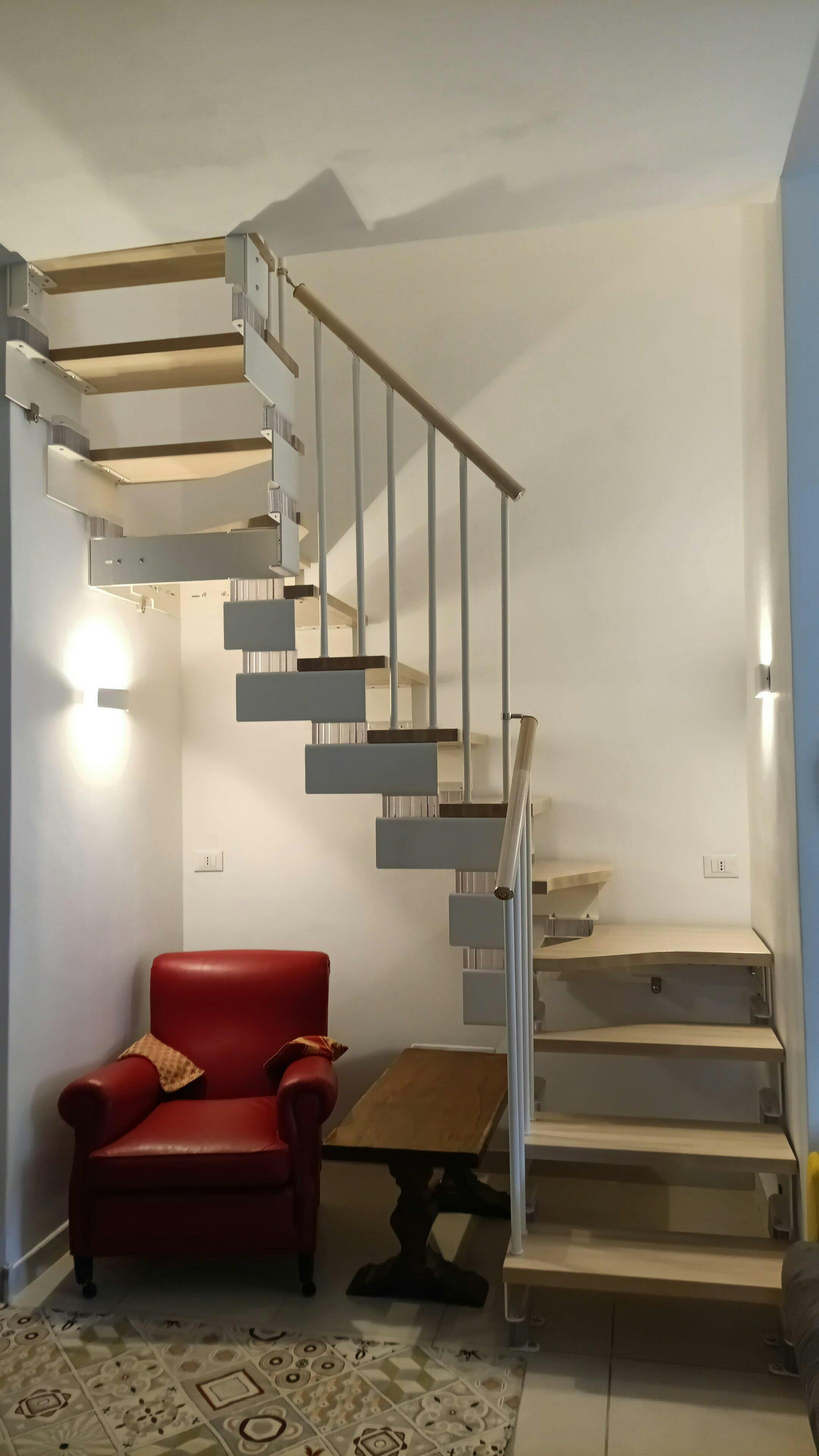 STAGGERED AND SHAPED STEPS: they reduce the size of the staircase without sacrificing comfort