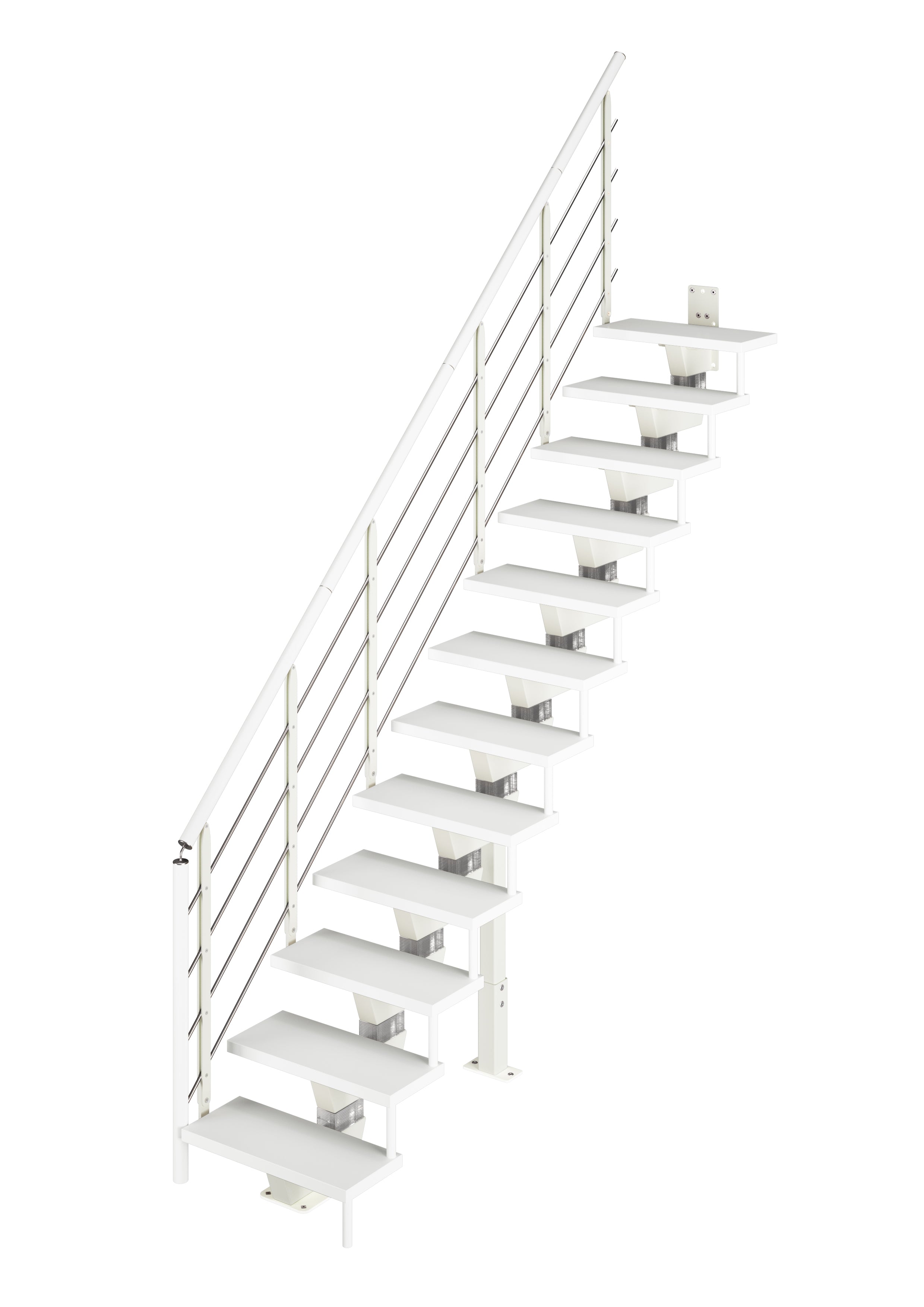 Escaliers de 19 à 21 marches : 1 support au sol (inclus dans la boîte à échelle) + 2 supports au sol ou latéraux (à acheter séparément dans la section accessoires)