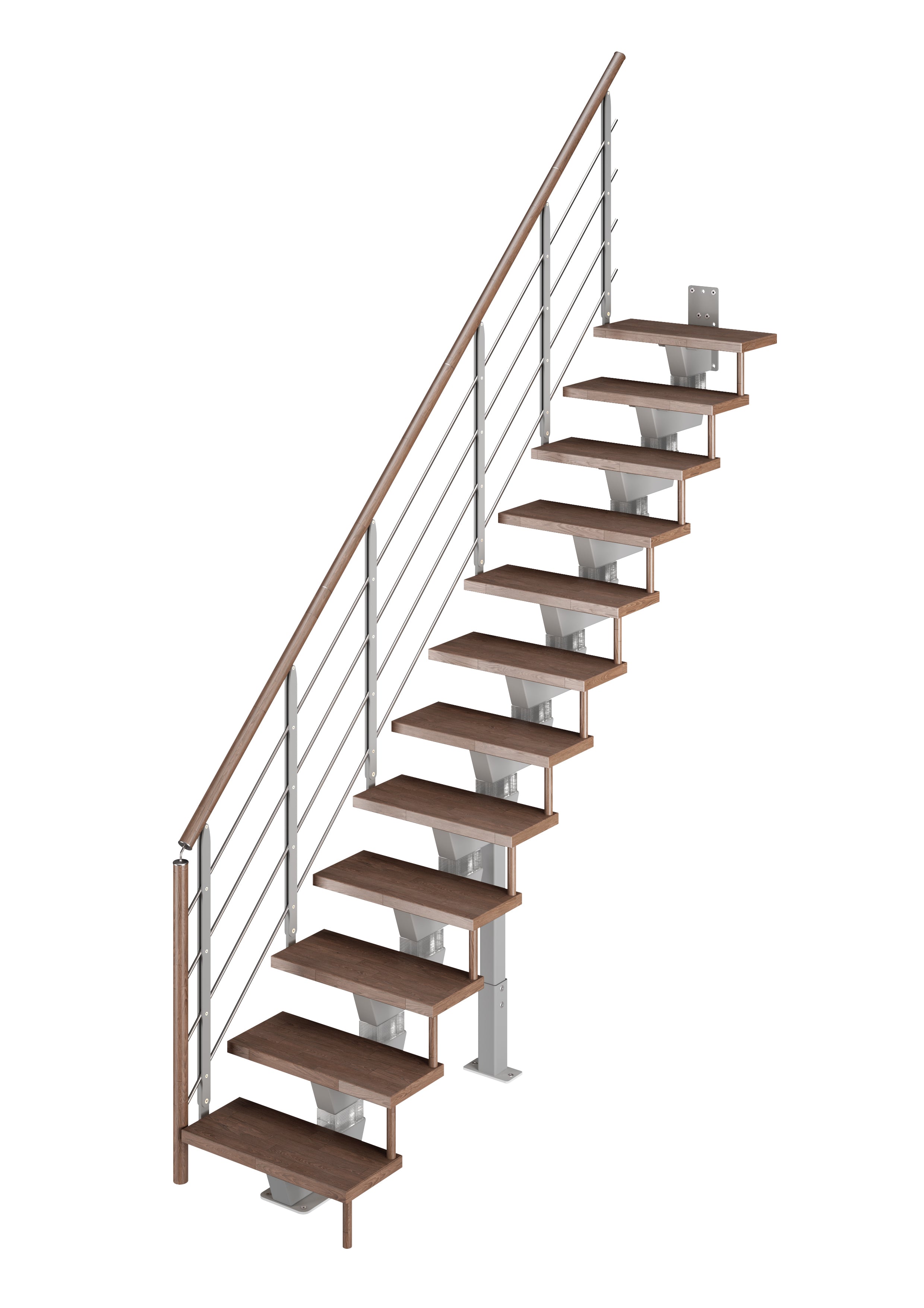 Escaliers de 19 à 21 marches : 1 support au sol (inclus dans la boîte à échelle) + 2 supports au sol ou latéraux (à acheter séparément dans la section accessoires)