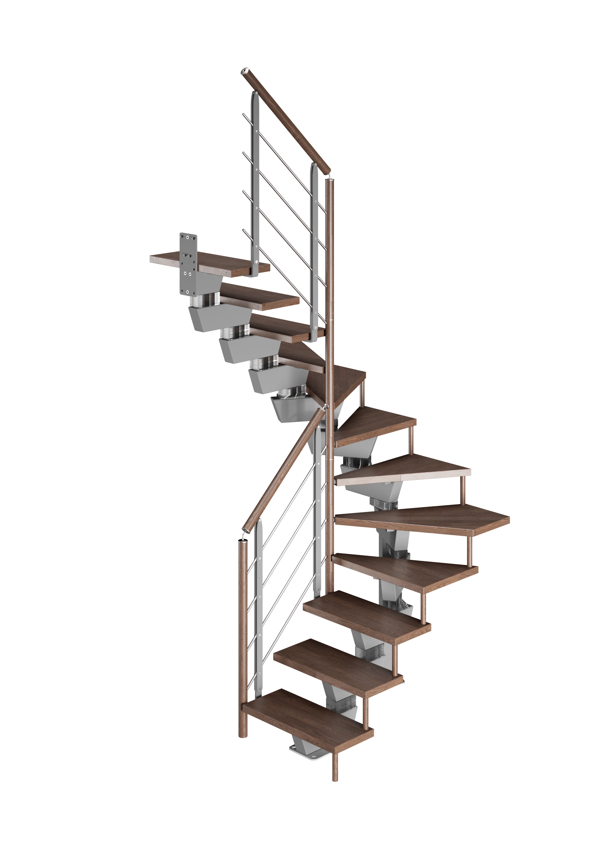 Escalier à 2 tours : 6 marches droites + 6 marches rondes